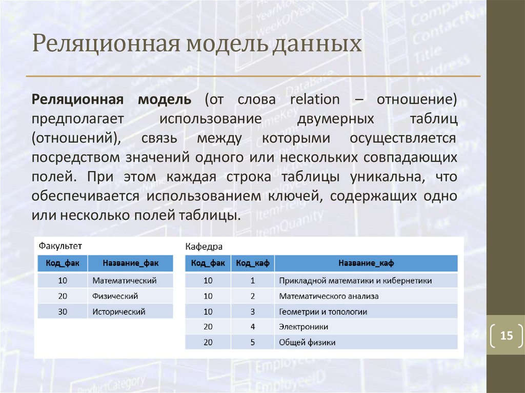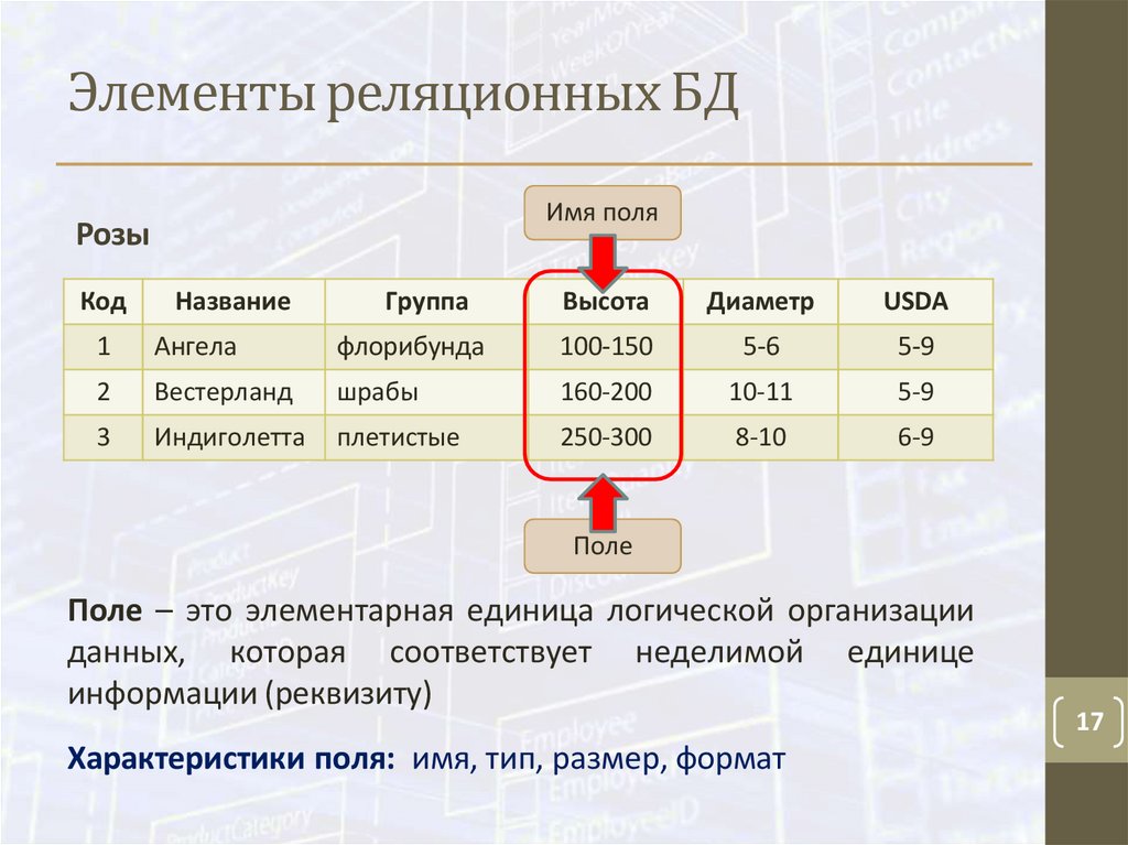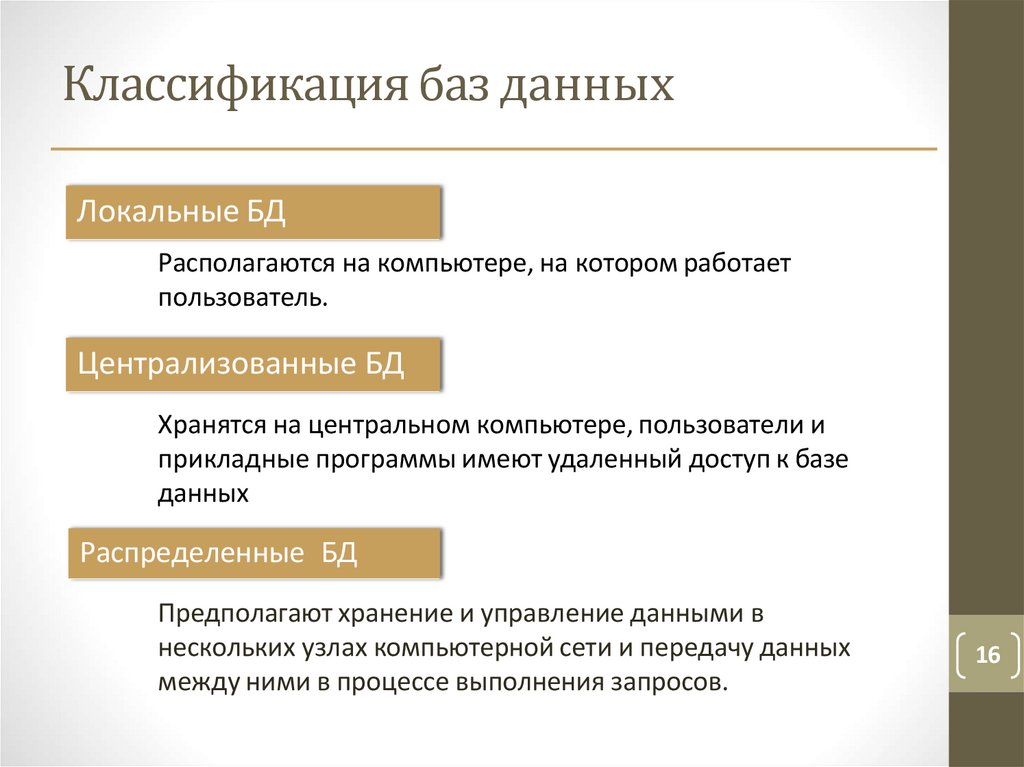 реляционная). Классификация БД по способу хранения БД. Элементы реляционных БД.