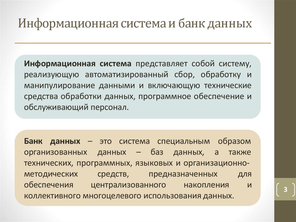Информационная система и банк данныхИнформационная система представляет собой систему,