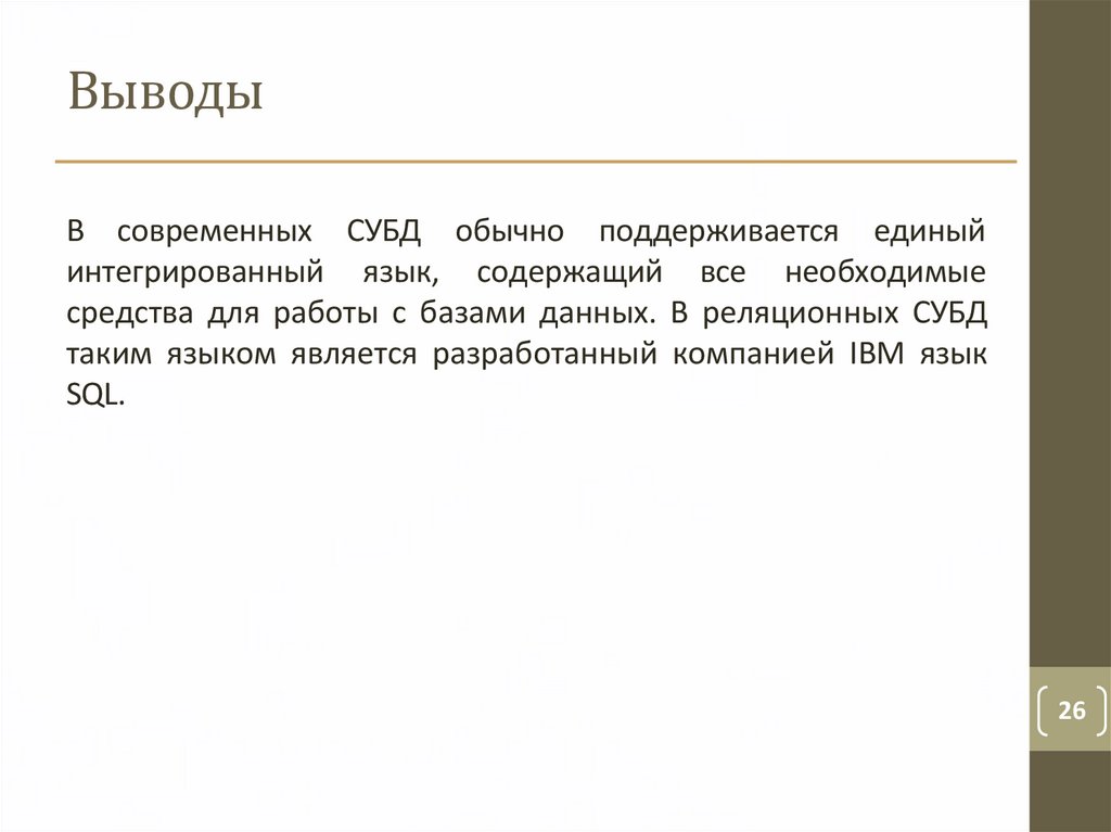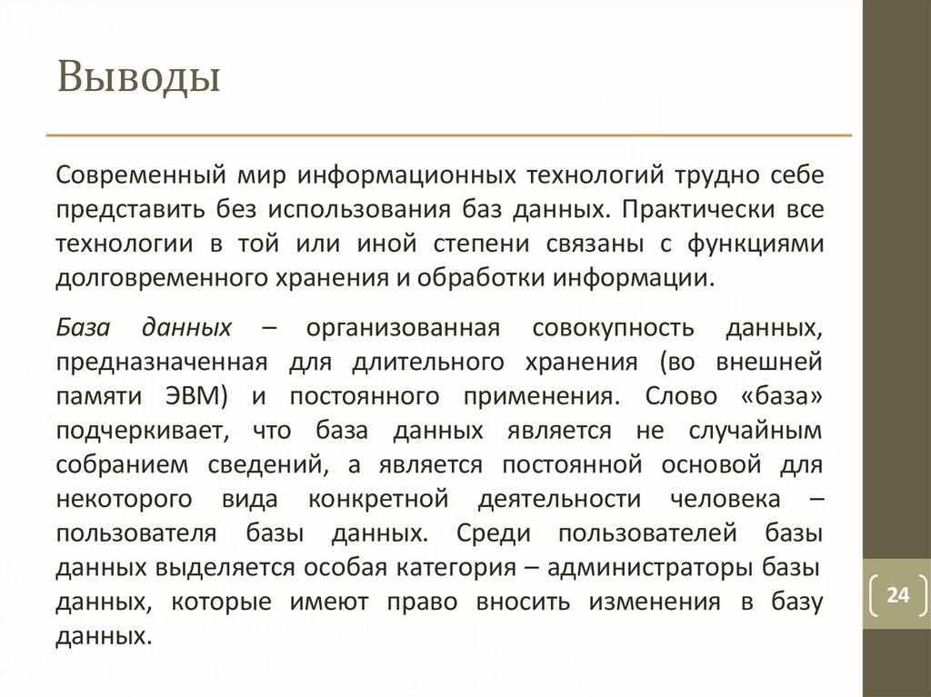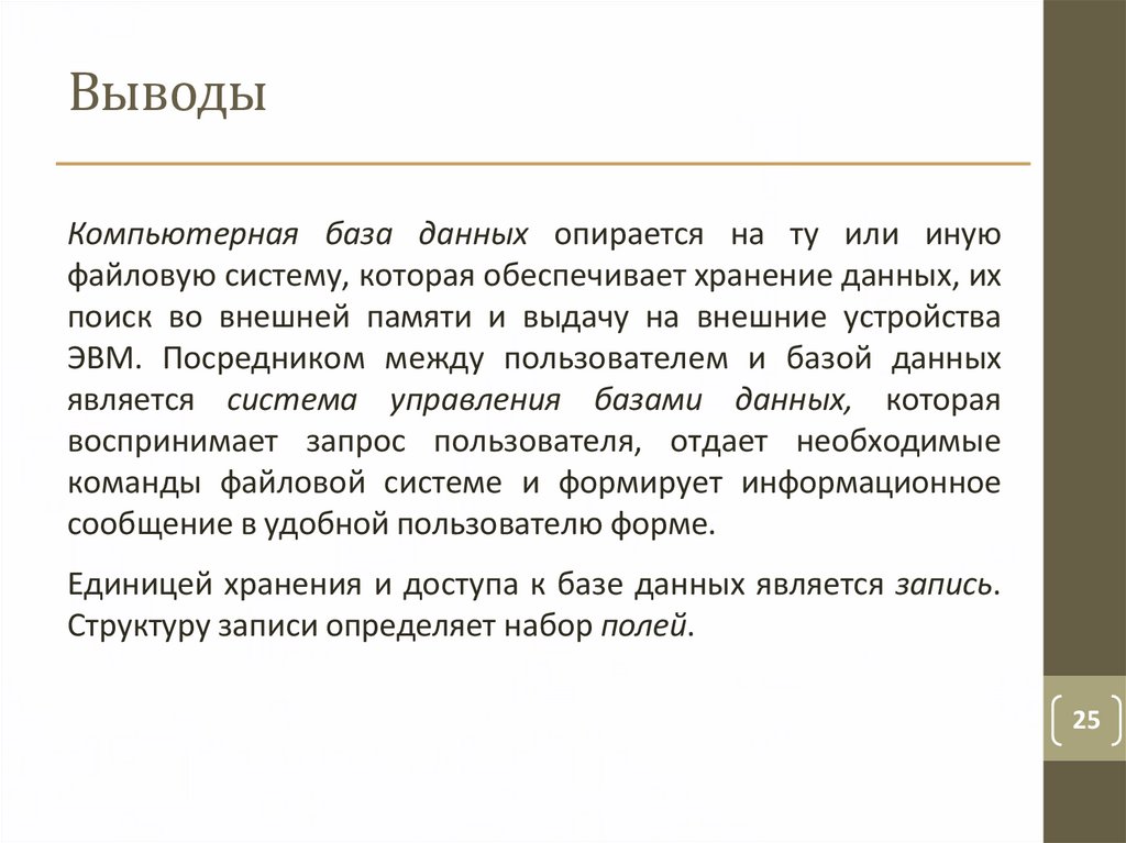 ВыводыКомпьютерная база данных опирается на ту или иную