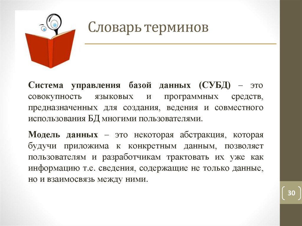 Словарь терминовСистема управления базой данных (СУБД) – это