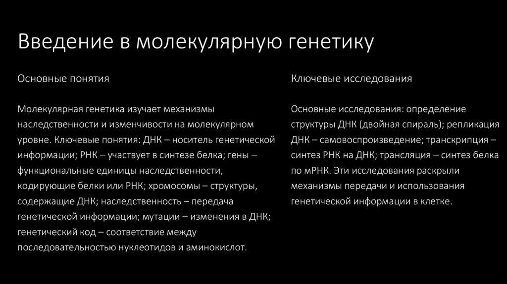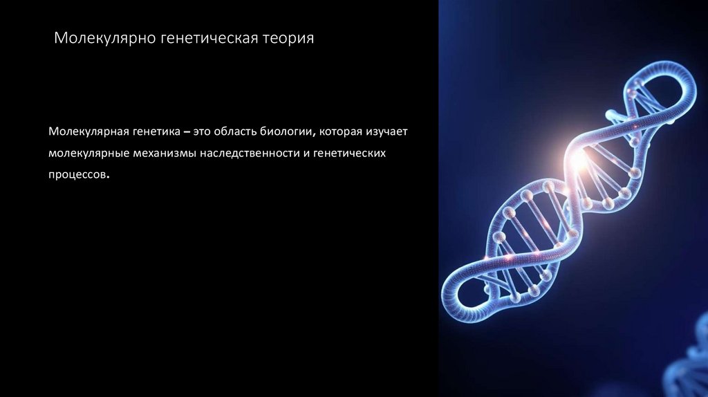 Молекулярно генетическая теорияМолекулярная генетика – это область биологии, которая изучает