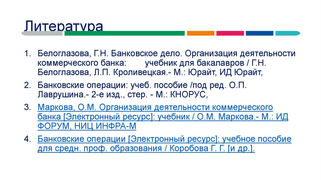 Литература1. Белоглазова, Г.Н. Банковское дело. Организация деятельности