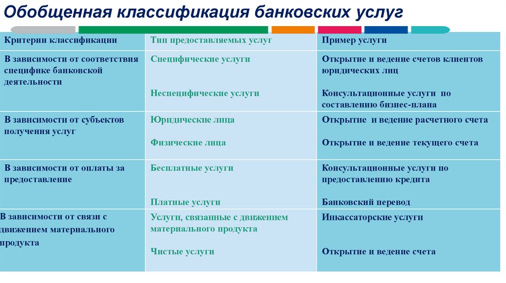 Особенности банковских услуг.