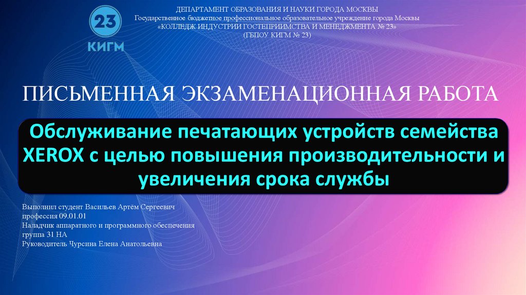 «КОЛЛЕДЖ ИНДУСТРИИ ГОСТЕПРИИМСТВА И МЕНЕДЖМЕНТА № 23»