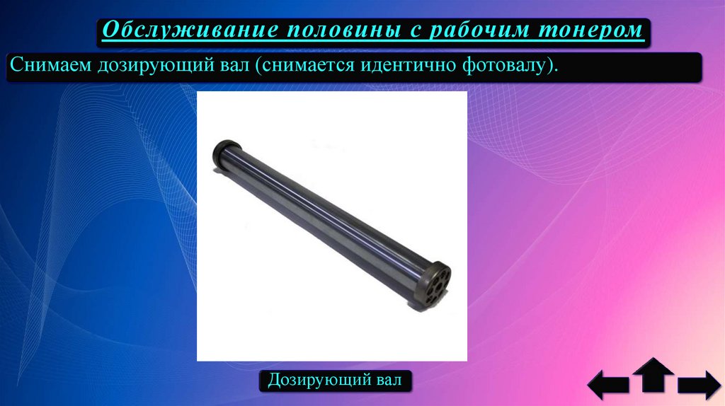Обслуживание половины с рабочим тонеромСнимаем дозирующий вал (снимается идентично фотовалу).
