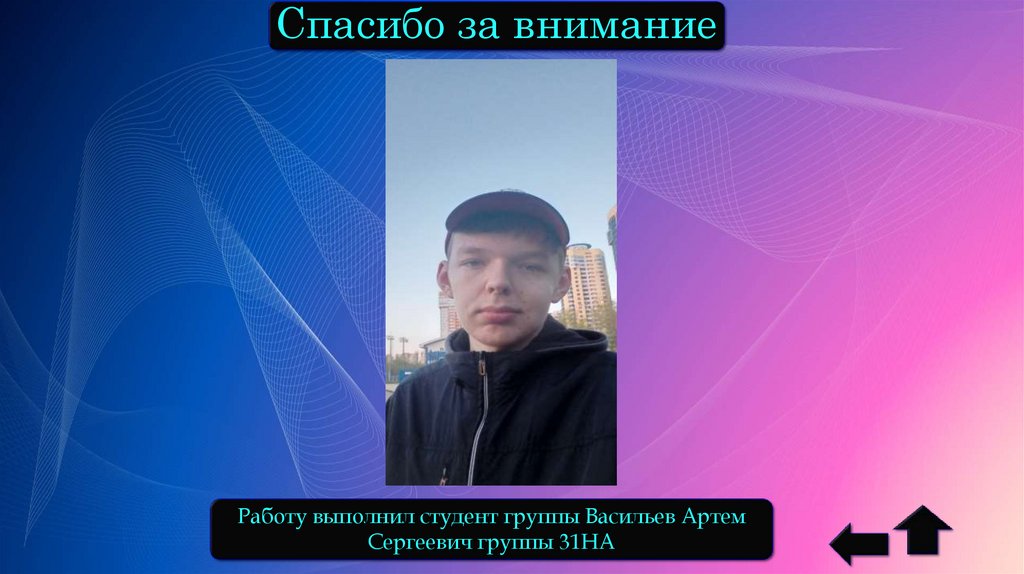 Спасибо за вниманиеРаботу выполнил студент группы Васильев Артем