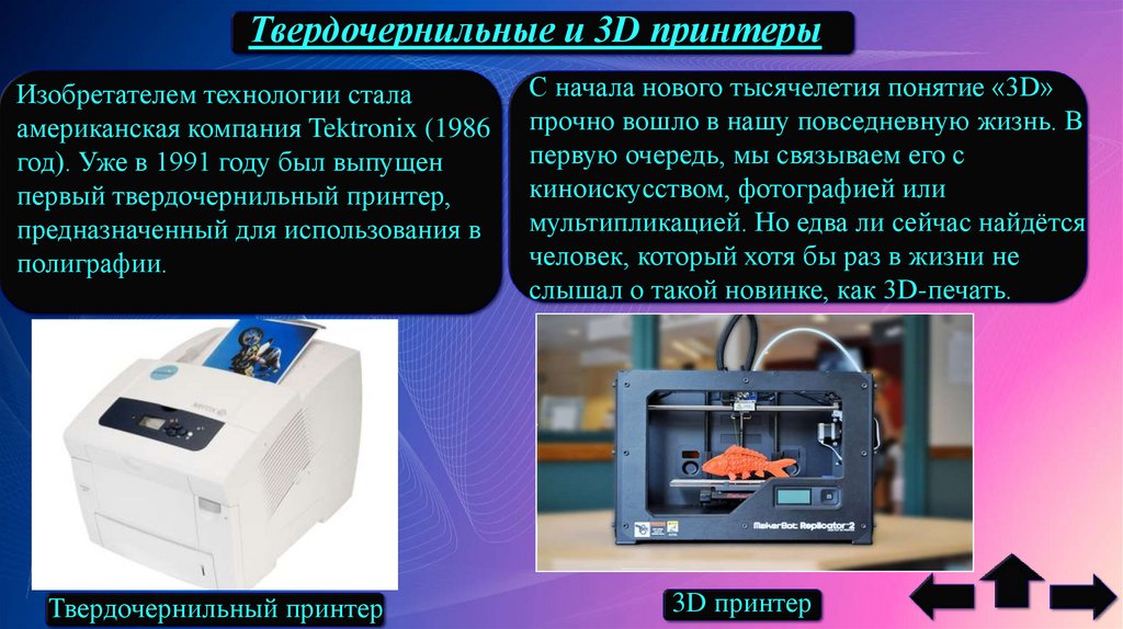 Твердочернильные и 3D принтерыИзобретателем технологии стала