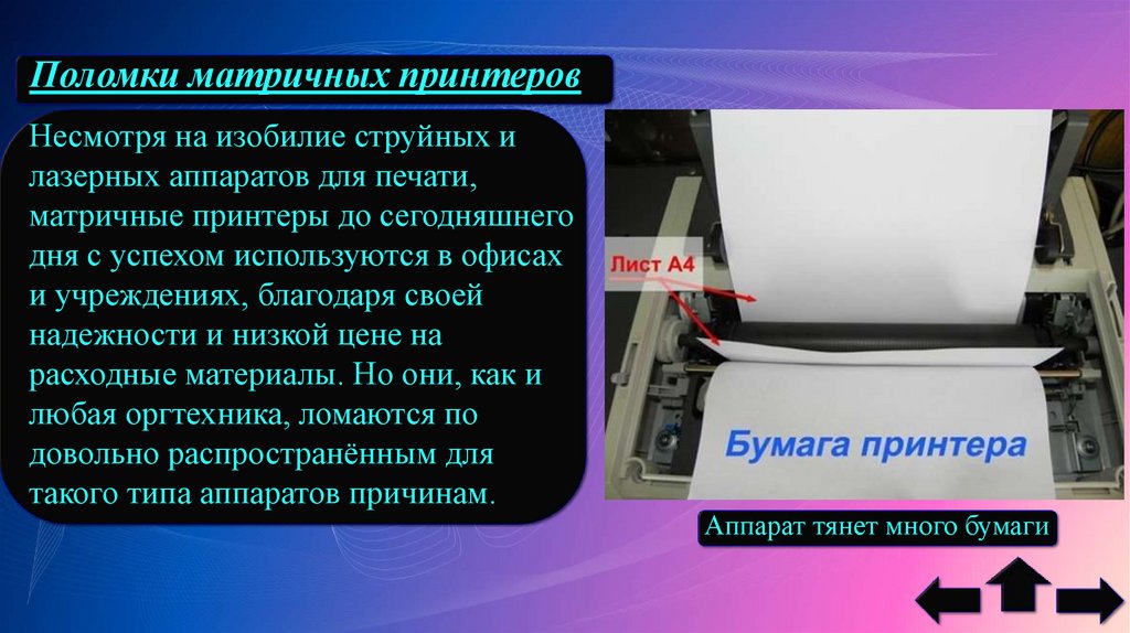 Поломки матричных принтеровНесмотря на изобилие струйных и