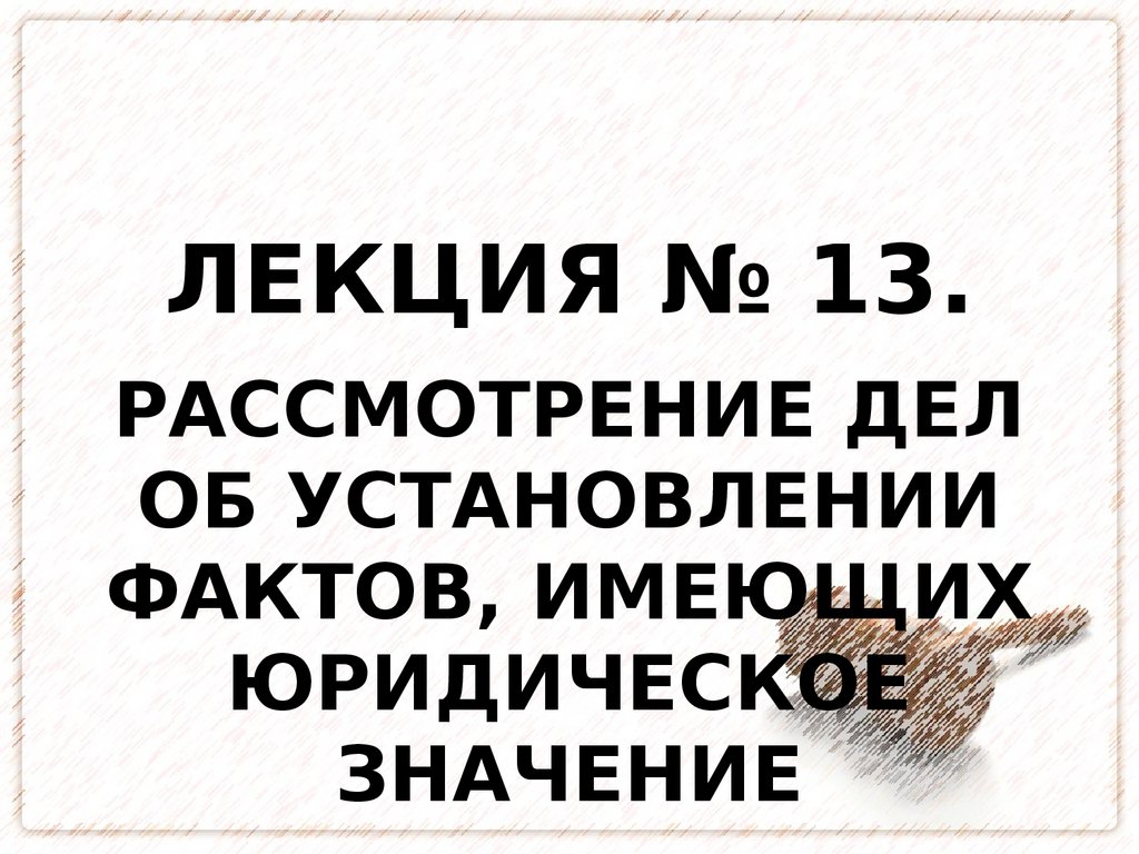 Об установлении фактов, имеющих юридическое значение. Лекция № 13