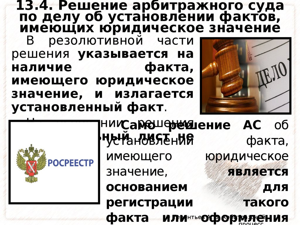 13.4. Решение арбитражного судапо делу об установлении фактов,