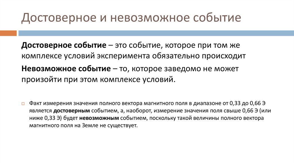 является достоверным событием, а, наоборот, измерение значения поля свыше 0,66 Э (или