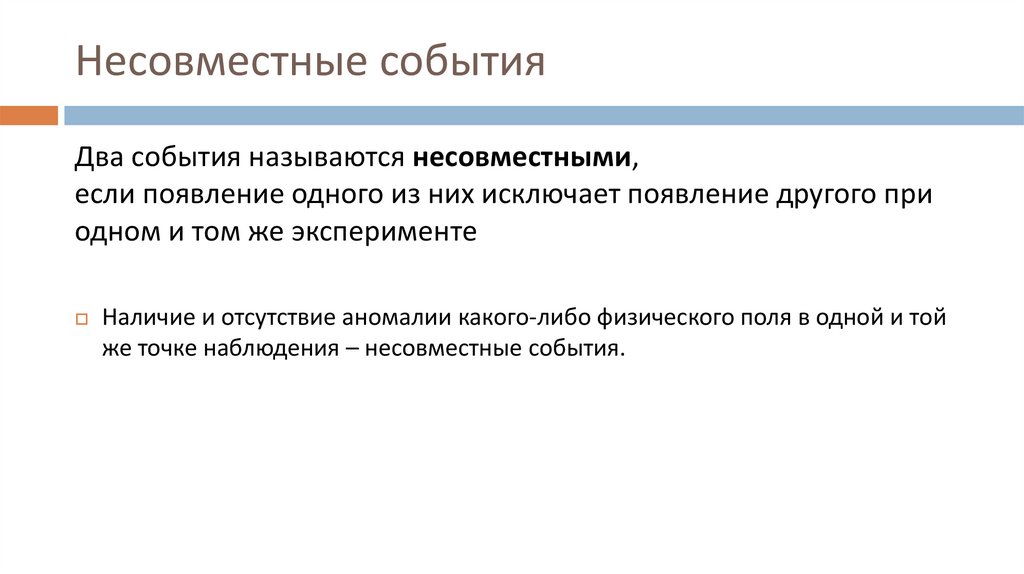 же точке наблюдения – несовместные события.