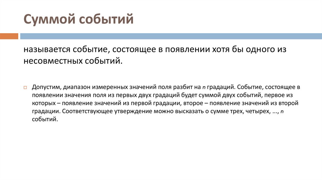 градации. Соответствующее утверждение можно высказать о сумме трех, четырех, ..., n