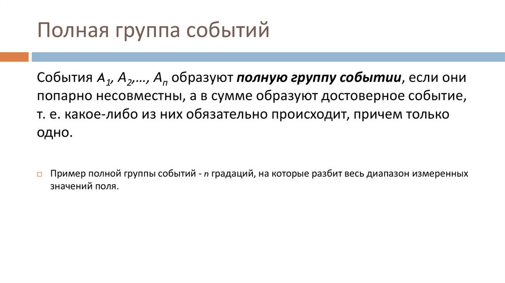 Пример полной группы событий - n градаций, на которые разбит весь диапазон измеренных