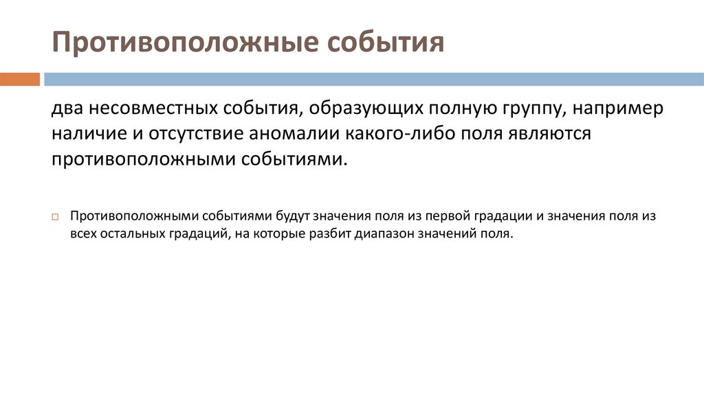 Противоположными событиями будут значения поля из первой градации и значения поля из