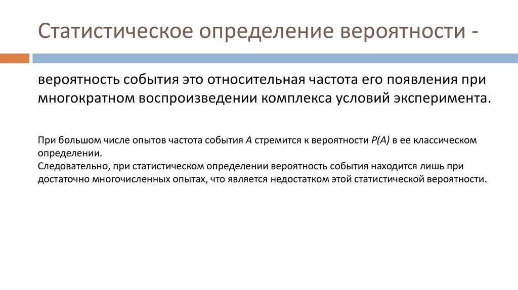 достаточно многочисленных опытах, что является недостатком этой статистической вероятности.