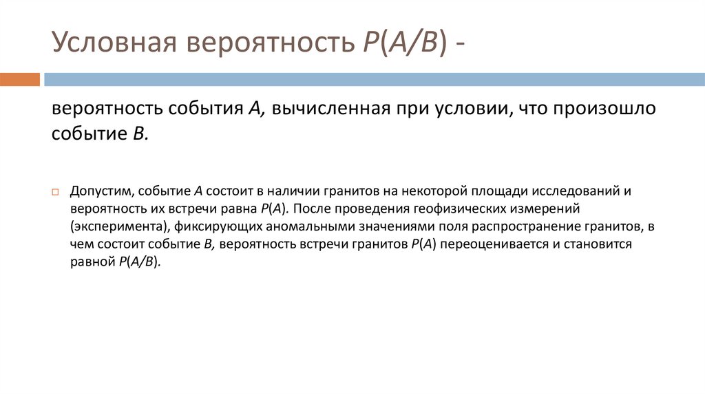 чем состоит событие В, вероятность встречи гранитов Р(А) переоценивается и становится