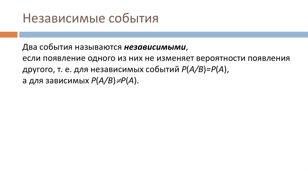 Независимые событияДва события называются независимыми,