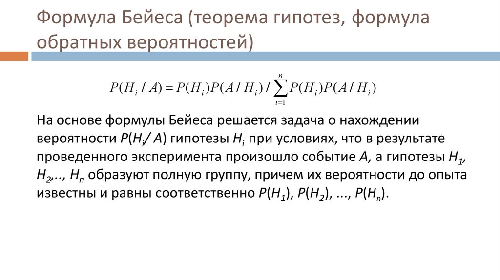 Формула Бейеса (теорема гипотез, формулаобратных вероятностей)