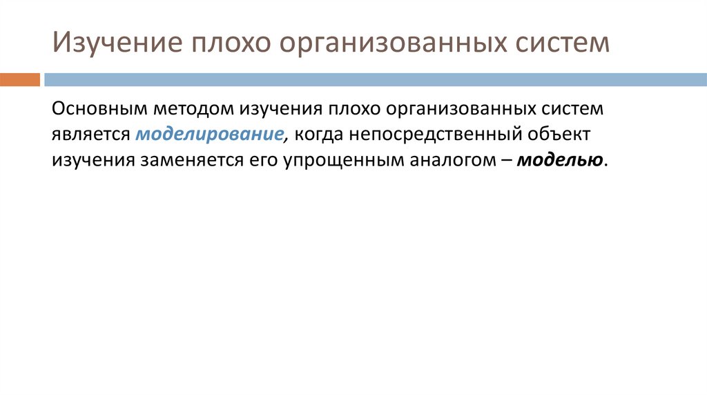 Изучение плохо организованных системОсновным методом изучения плохо организованных систем