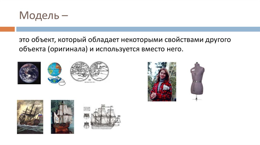 Модель –это объект, который обладает некоторыми свойствами другого
