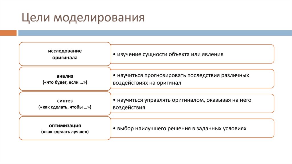 Цели моделированияисследование