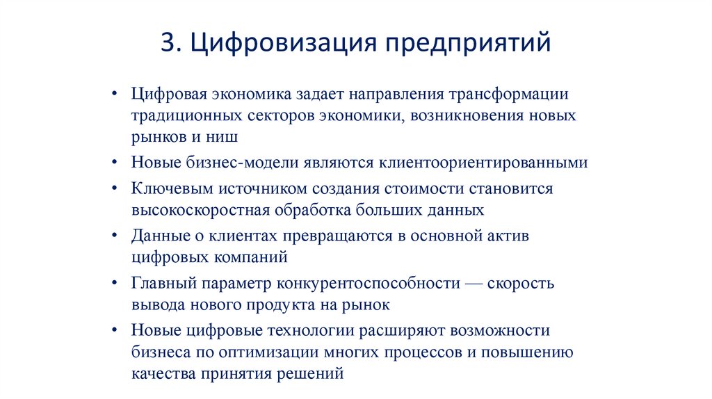 3. Цифровизация предприятий• Цифровая экономика задает направления трансформации