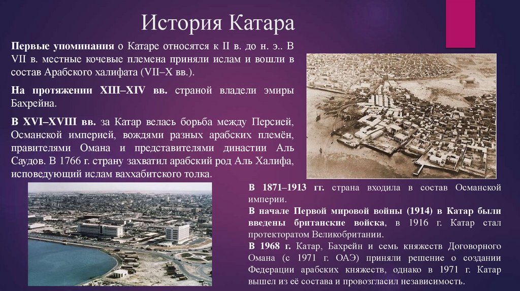 История КатараПервые упоминания о Катаре относятся к II в. до н. э.. В