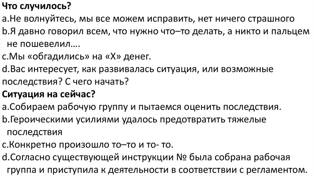 Что случилось?a.Не волнуйтесь, мы все можем исправить, нет ничего страшного