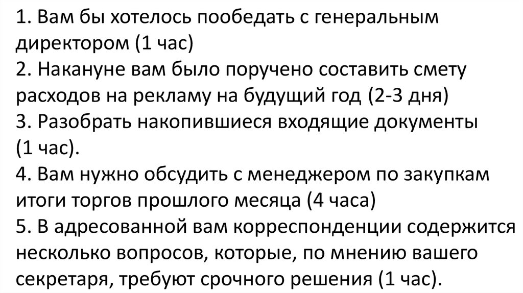 1. Вам бы хотелось пообедать с генеральнымдиректором (1 час)