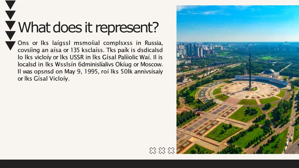 What does it represent?Ons or lks laígssl msmoíial complsxss in Russia,