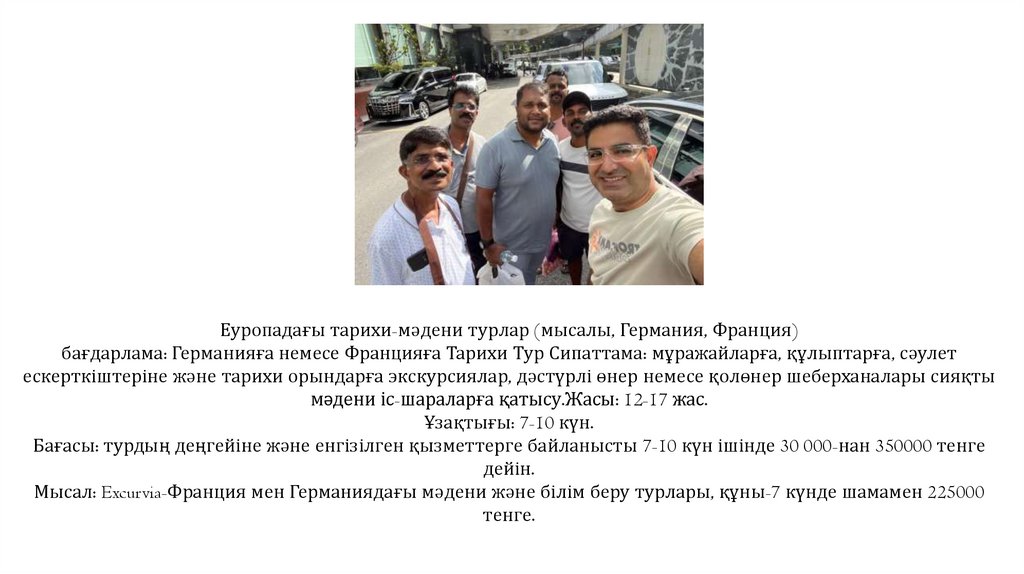 Мысал: Excurvia-Франция мен Германиядағы мәдени және білім беру турлары, құны-7 күнде шамамен 225000