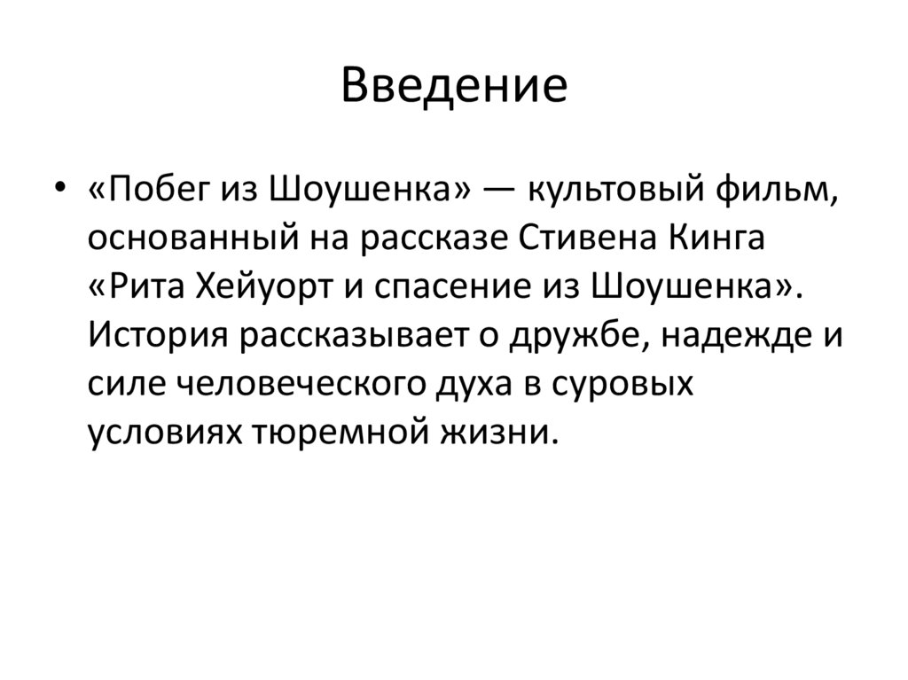 Введение• «Побег из Шоушенка» — культовый фильм,