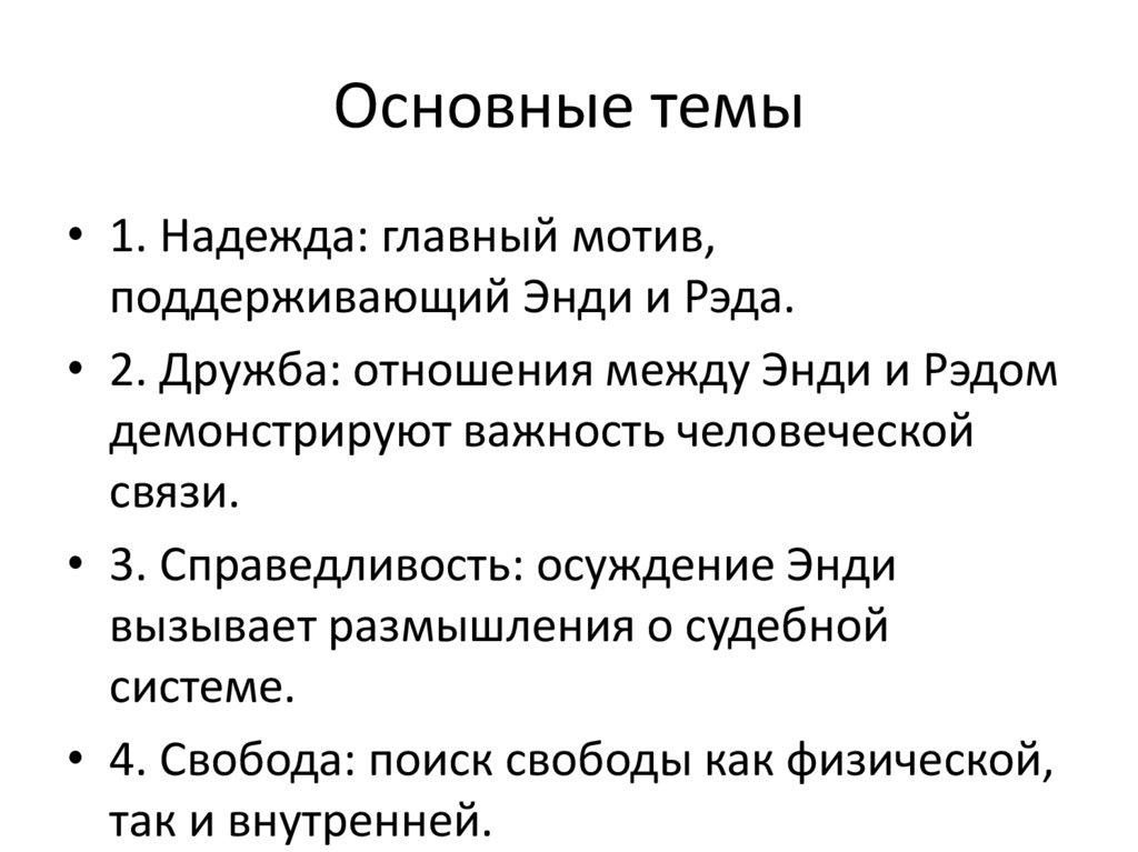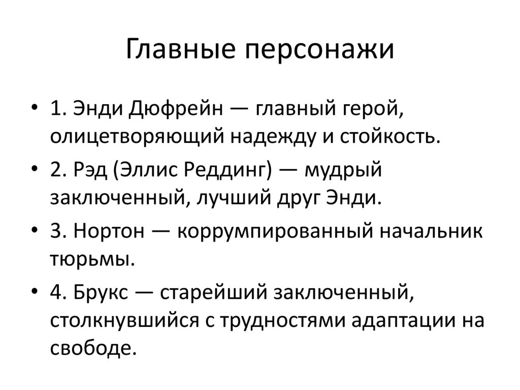 Главные персонажи• 1. Энди Дюфрейн — главный герой,