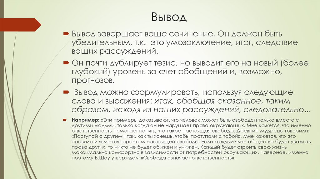 ВыводВывод завершает ваше сочинение. Он должен быть