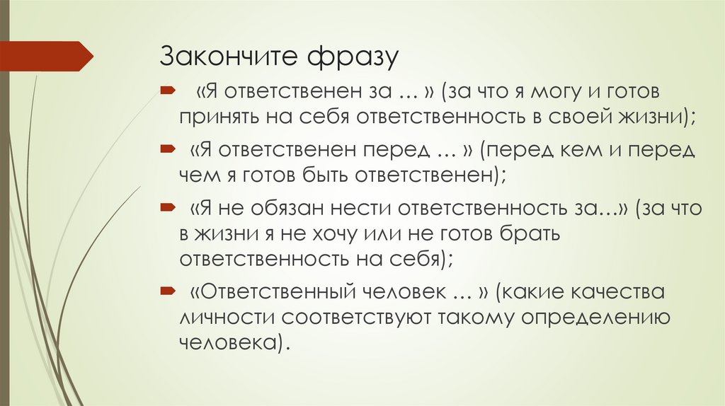 Закончите фразу«Я ответственен за … » (за что я могу и готов