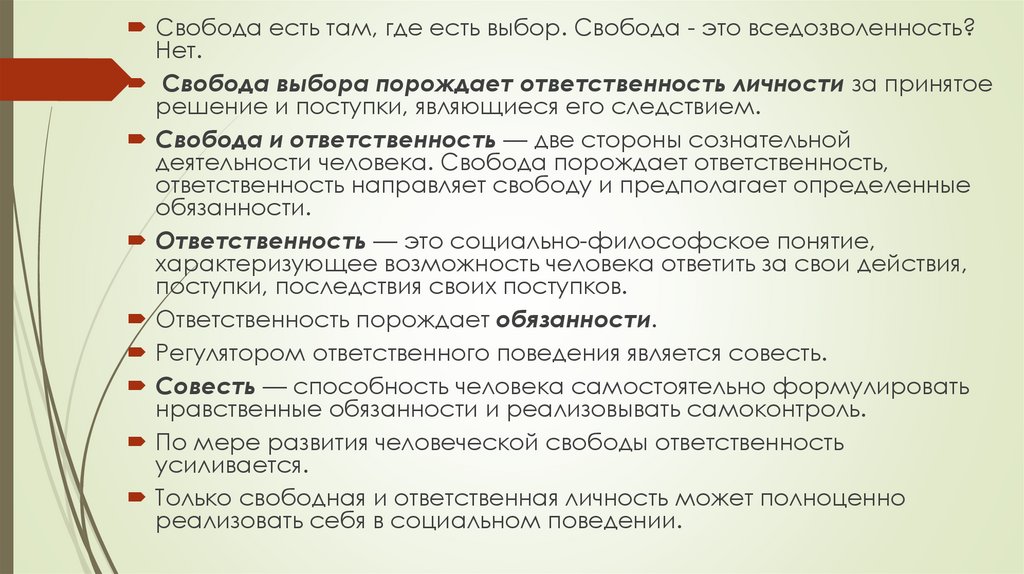 деятельности человека. Свобода порождает ответственность,