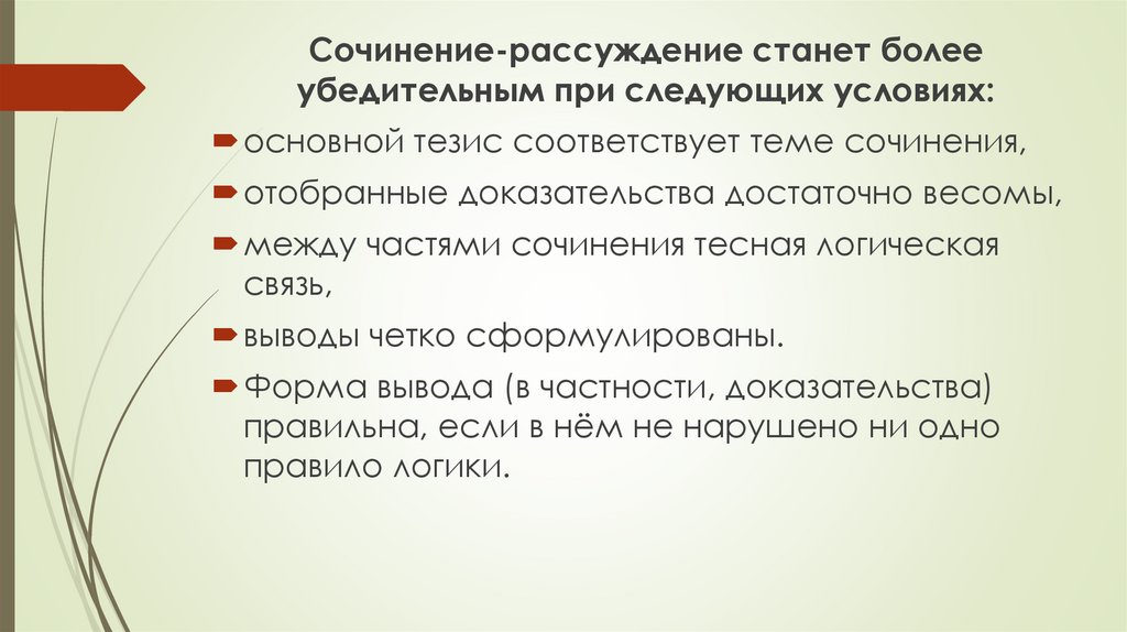 Сочинение-рассуждение станет болееубедительным при следующих условиях: