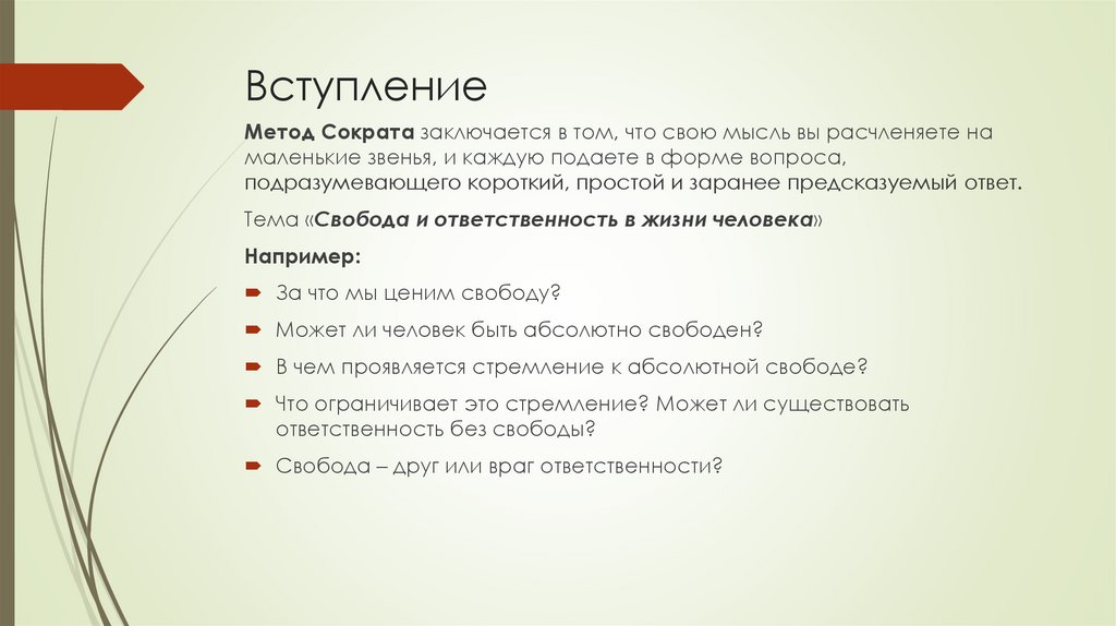 ВступлениеМетод Сократа заключается в том, что свою мысль вы расчленяете на
