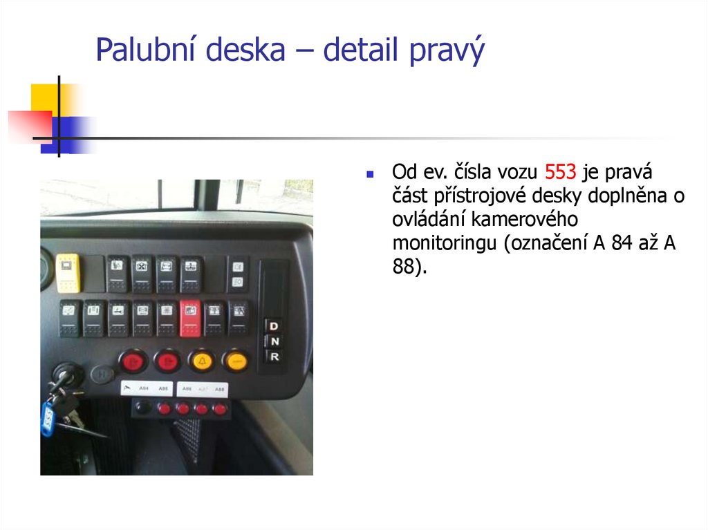 Palubní deska – detail pravýOd ev. čísla vozu 553 je pravá