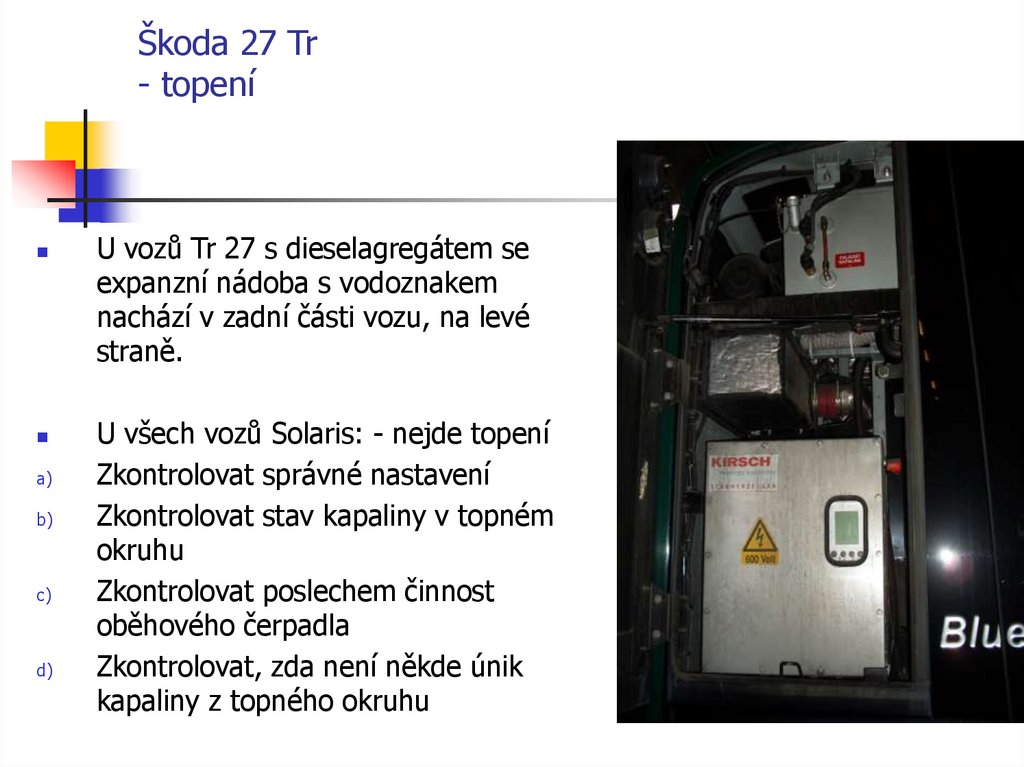 Některé vozy jsou vybaveny pomocným dieselagregátem KIRSCH