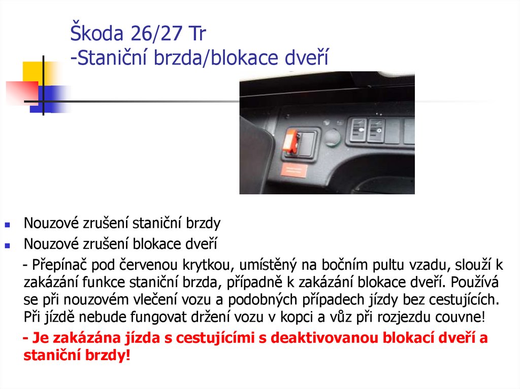 + otevřené dveře kabiny řidiče – doprovázeno akustickým upozorněním, 10. jízda v