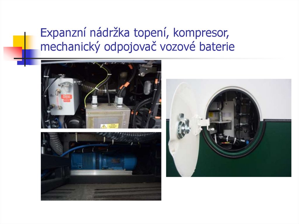 Expanzní nádržka topení, kompresor,mechanický odpojovač vozové baterie