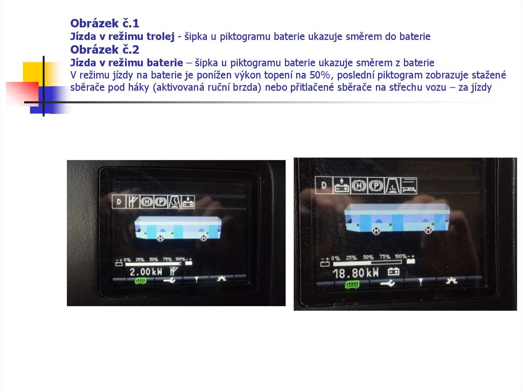 Obrázek č.1Jízda v režimu trolej - šipka u piktogramu baterie ukazuje směrem do baterie