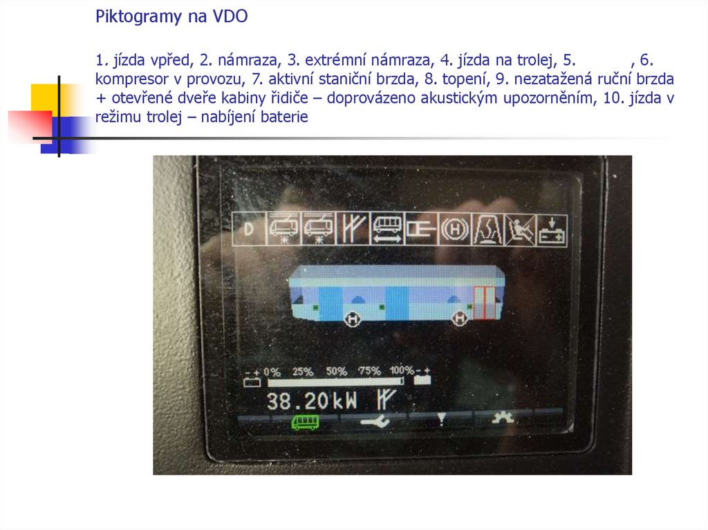 Piktogramy na VDO1. jízda vpřed, 2. námraza, 3. extrémní námraza, 4. jízda na trolej, 5.