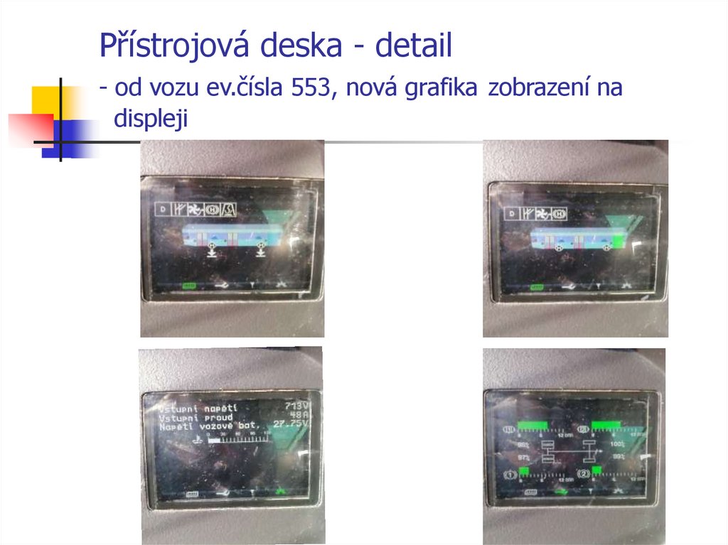 Přístrojová deska - detail- od vozu ev.čísla 553, nová grafika zobrazení na