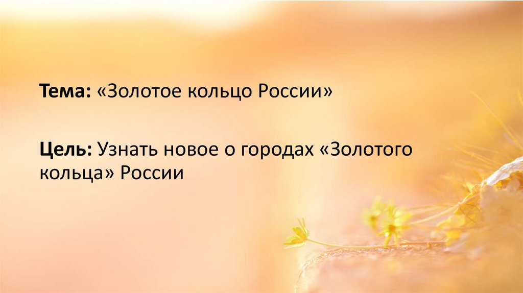 Тема: «Золотое кольцо России»Цель: Узнать новое о городах «Золотого