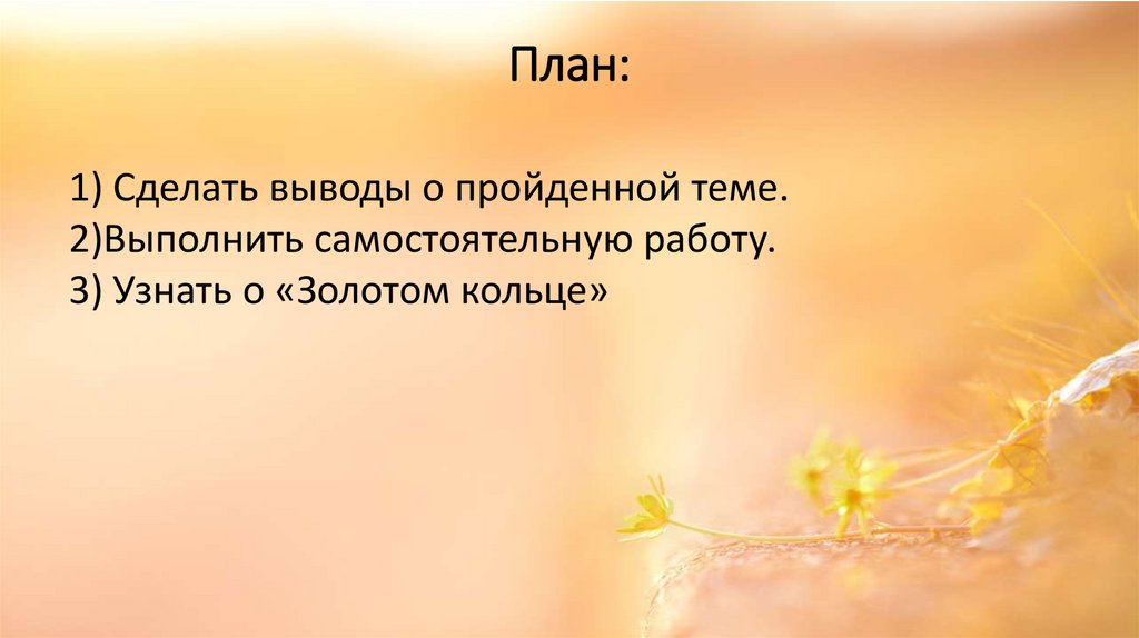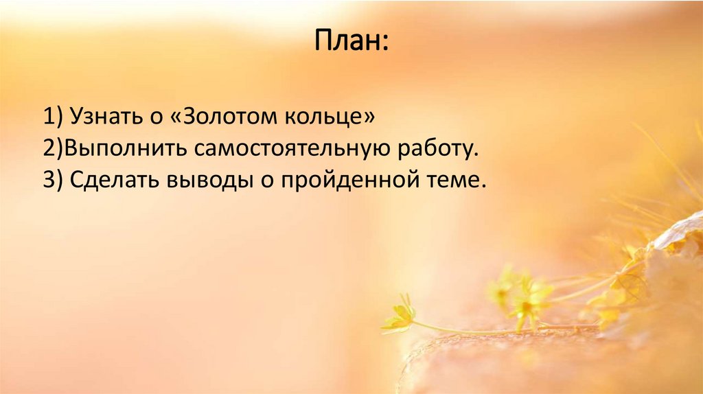 План:1) Узнать о «Золотом кольце»