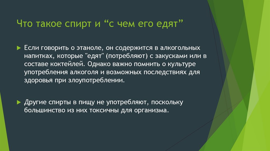 Что такое спирт и “с чем его едят”Если говорить о этаноле, он содержится в алкогольных