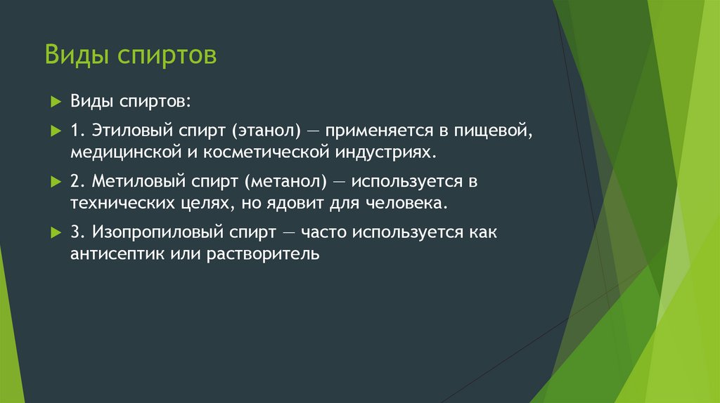 Виды спиртовВиды спиртов: